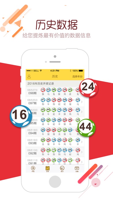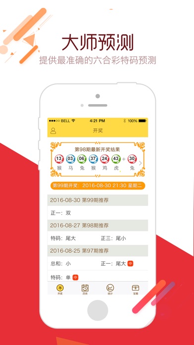 六合彩宝典(大仙版)是一款以六合彩特码预测为主要内容,集六合图库、历史开奖、统计信息、推荐数据于一体的香港彩信息应用。基于历史开奖信息,通过大数据分析,以及运用自主研发的分析香港彩方法,率先实现了香港彩各玩法的推荐。应用中的数据统计把特码、正码、波色、生肖等各玩法的历史以图表形式显示出来,用户可以查询到过往任何阶段的数据。 【大师预测】 业内知名大师,提供最准确的香港六合彩特码预测; 【历史开奖】 历史数据覆盖40年,给您提炼最有价值的数据信息; 【统计图库】 通过大数据分析,历史数据以图表形式显示出来;