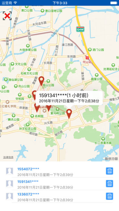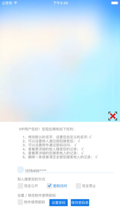 您也许很想知道最近谁在搜索您在哪里,也许您很想知道某个人现在在哪里?也许是您的家人、朋友,哪怕是一个陌生人,这个软件都能帮助您实现这一切。 1,直观显示有哪些人正在查看您的位置; 2,能通过地图实时查看您正在搜索的人的位置; 3,查看您搜索的人的最近多个位置; 4,您可以设置他人只能通过输入您设置的密码才能查看您的位置; 5,您也可以设置不让任何人查看您的位置; 6,您还可以设置软件打开需要密码保护; 7,您可以匿名查看别人的位置;