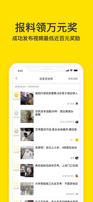 梨视频全球拍客全面升级,60000拍客遍布全球七大洲,覆盖525个国际主要城市,时刻展现全球资讯,足不出户带你看遍全球。 即刻成为拍客,报料被采用即可获最低近100元、最高10000元奖励! 这就是梨视频,用短视频聚焦社会故事,讲述普通人不普通的生活。 ——【梨视频的特色】—— 1.国内国际社会奇事 讲述身边普通人不普通的故事,聚焦全球正在发生的新鲜热辣奇闻逸事。记录蹭地铁wifi跟家人通话的农民工老葛,卧底揭秘女德班,目击美国佛州枪击案,亲历叙利亚前线炮火……形形色色人生尽收眼前,大大小小国际现场一目了然。 2.报料可领10000元 梨视频拥有遍布全球的拍客网络,六万拍客分布在全球五百…