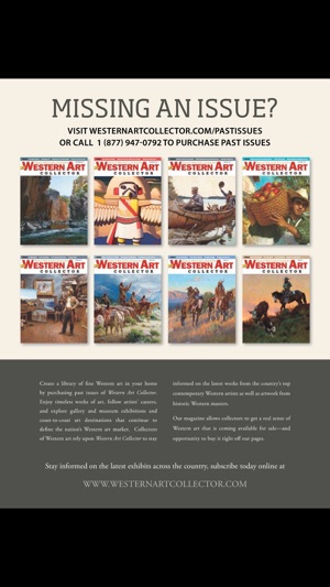 With previews of gallery exhibitions, museum shows and auctions, Western Art Collector is the premier monthly magazine for collectors searching for works by talented living and past artists who depict the West in paintings and sculptures. Magazine Subscriptions are available for purchase inside thi…