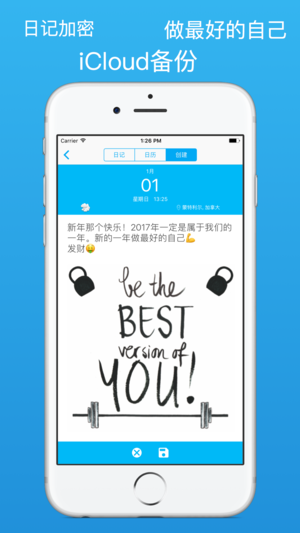 My Diary 我的日记是一款简单易用,功能丰富的个人日记软件。 - 设置自己的头像和名字 - 自动获取天气,并添加图标 - 自动添加地理位置 - 快捷创建日记 - 添加照片 - 加密或者指纹解锁 - 查看日记详细,随时修改 - 更换主题风格 - 更换日记页面背景图片 - 添加紧急联系人 - 日记页面查看所有日记或某一天的日记 - iCloud备份和同步!!!!(妈妈再也不用担心我的数据丢失啦) - 添加属于你的注意事项哦 - 添加你的计划事项 - 一堆注意事項 - 一堆計画事項 - 有些小小的惊喜和涨姿势的东东 - 憋了好久的关于 还有好多新功能正在玩儿命开发中,具体可参考app里面的…