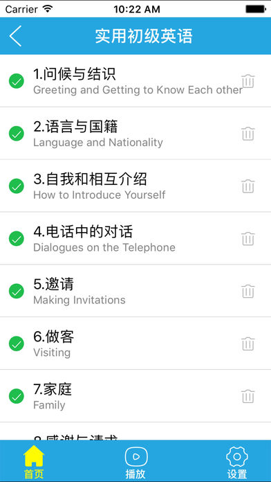●●●●●本软件是专门为英语初学者量身打造的零基础英语学习软件,支持文本音频同步朗读,点击句子发音,滑动控制进度,支持后台播放! ●●●●●目录如下: ***《实用初级英语》系列; ***《英语口语8000句》系列; ***《英语口语999句》系列; ***《新英语900句》系列; ***《英语会话800句》系列; ***《从ABC到流利口语》系列; 软件功能: ●●●●●支持离线学习功能,即使不联网也一样学习,到哪都不怕; ●●●●●精准的睡眠定时功能,让您睡前轻松学英语; ●●●●●可以自动顺序学习功能;支持后台学习; ●●●●●可以自动记录学习位置,不用担心下次找不到学到哪里;