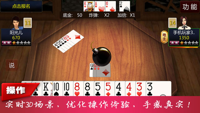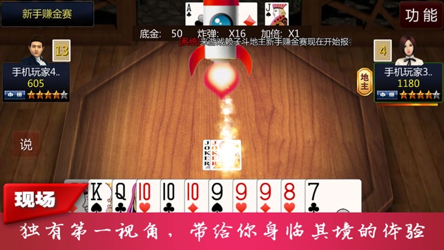 人游戏,54张牌。 叫牌:牌背朝下放置三张牌,随机选择一个玩家开始叫分。玩家可选择“当地主”或者“不当”,如果不当,则由该玩家下家选择。三人都不当地主,重新发牌。手上有双王或者1王两2时,轮到自己叫牌必须当地主。 翻牌:确定地主后,三张牌翻开,中间的牌点数+1的牌为赖子。翻到2或者王,则3为赖子。翻开的牌所有人可见,然后收回到地主手中。 赖子:赖子与其他牌组合成任意牌型(不可与王组合成火箭),每局有4个赖子。赖子不可单独出。(若出到最后一张牌,自己有出牌权的时候可以出。)确定赖子后,赖子牌放到手牌的最左边,用变色或者花边标记区分开。 出牌:首先由地主出牌,逆时针方向由其他玩家选择压牌或者过,某…