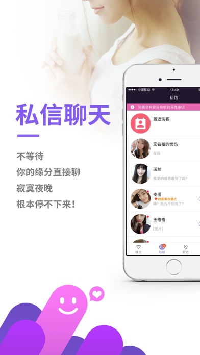 每晚都辗转反侧,难以入睡?想玩的夜里找不到人陪?总让寂寞占据你的内心? 在这里,这些统统不用担心! 一款专为同城附近男女打造的情感交流神器,海量注册用户令孤单的你能够快速遇到心仪的Ta,随时随地寻找同城寂寞异性。最靠谱最真实的快速交友神器,让你孤独的夜里,有人陪,不孤单!寂寞之夜一个人怎么行!在这里,不闲聊,约你出来! 【海量用户】 每天都有海量单身男女在线互动,总有一个适合你! 【搜索缘分】 海量优质用户等你来发现,等你来发现心中的Ta 【消息提醒】异性的来信及时提醒,谁访问了你,谁给你来信实时提醒,保证不错过任何机会! 【私信聊天】 你的缘分直接聊,寂寞夜晚有人陪伴。 【及时提醒】 谁给你来信,谁访问了你,实时提醒,确保不错过缘分。
