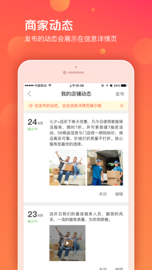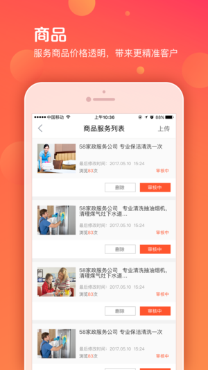 【产品简介】 58同城为商家开发的帮助商家维护日常信息、并进行运营管理的一款工具——58商家通 有了58商家通,商机一点即通! 本地生活服务类商家的首选APP 【产品特点】 基于58同城庞大的用户数量,更多的潜在商机; 简简单单即时交流,业务来电轻松展示; 目标客户尽在掌握,本地生活服务用户的不二之选; 用的好,商机就是你的! 【适用范围】 开放城市:全国