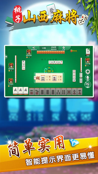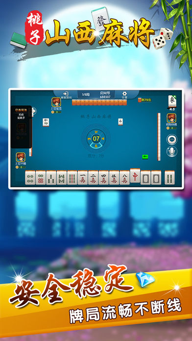 桃子山西麻将-咱山西人自己的麻将游戏. 桃子游戏推出重度力作“桃子山西麻将”,画面精美,玩法正宗,更安全,更省流量。 更全面,更正宗,大品牌有保证。绝对好玩,绝对刺激,尽在桃子山西麻将。可以和亲朋好友一起游戏的最地道的山西桃子自建桌麻将。 【最地道】地道山西麻将玩法,可碰、杠,不能吃牌,胡牌之前需要报听。除一般番型外,特色玩法如风可以胡点炮,杠钱单独结算等,富有别致趣味性。山西人自己的配音,要玩就玩山西人自己的麻将。 【最稳定】大厂出品,确保游戏过程更加稳定,专心玩游戏,没有掉线卡顿烦恼。 【最好玩】再也不用苦于配桌,全民手机时代,你可以再手机上随时随地和亲朋好友搓麻将,是传统麻将馆的有力补充。和亲朋好友一起开房,决一高下吧! 【最靠谱】可以录像回放,同IP报警,杜绝外挂,真实可靠。 【最智能】智能提示、界面大方更具人性化。