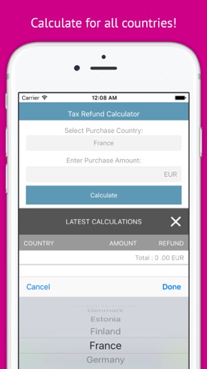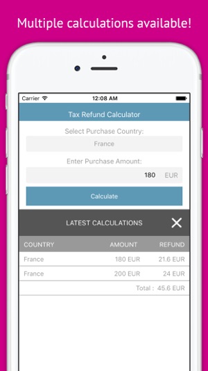 如果您购买的时候你在国外的东西,你可以得到“退税”为您的货物。此应用程序将帮助你计算退税。它是免费的,这是很容易的。只需输入您的购买,它会自动计算。只要你想,你可以输入许多商品。它总结所有这些,计算总退税。38参观人数最多的国家对我们的数据库中。下载的应用程序来计算您的退税。拿回自己的钱! English: If you purchase something when you are abroad, you can get ""tax refund"" for your goods.This application will help you to calculate tax refund.…