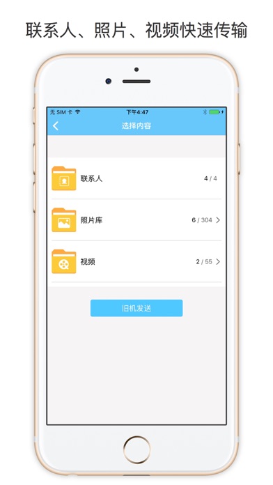 换新机,很开心。旧手机里的数据怎么办?一键换机助手帮你完美解决这个问题。零流量一键传输通讯录,照片,视频到新手机。无需流量,不用数据线,不能更方便! 操作非常简便: 新旧手机连接同一局域网,没有外网也能传输,也不耗费手机流量; 同时安装软件,新手机选择接收,旧手机选择发送; 选择相应文件,一键快传! 仅限两台手机之间建立连接传输,安全放心! 联系我们:np2016.ant@gmail.com