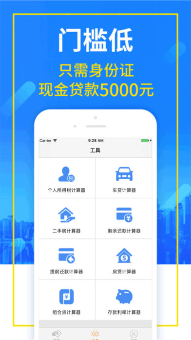 现金贷--小额信用贷款、借钱、借贷平台,30分钟极速放款,帮您快速完成贷款,让借款更便捷、更有效、更便宜。 江湖总有救急之时,网购、旅游、车贷、房贷,手机贷款就上现金贷。 解后顾之忧,一站全搜,借钱贷款就来现金贷,借钱用圆您梦,助您飞! 您的满意是我们永恒的追求和赤诚的守候! 【产品特色】 1.极速贷款:多种贷款机构,当天审核,当天放款 2.多种人群:支持工薪族,大学生,企业主,个体户 3.产品多样:由贷款机构和金融机构提供,信息安全可靠 4.贷款工具:包括贷款计算器分期还款计算器。