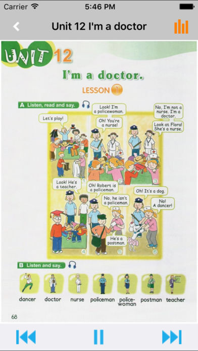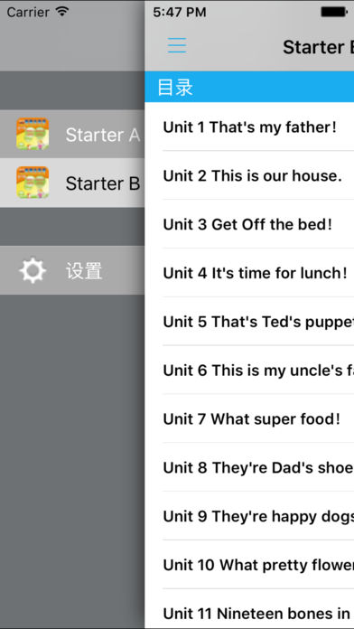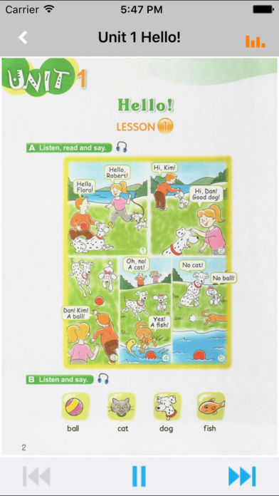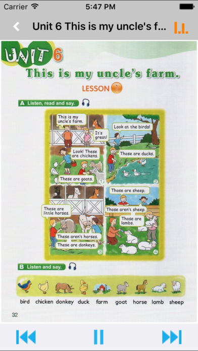 *根据教材配套,此应用为《新概念英语青少版》Starter A、Starter B完全最新版。 *涵盖教材全部内容,让您全面掌握单词、短语、句子、语法及课文内容。 *全套原版录音和教材完全同步,助您成为英语大明星。 *操作简便、携带方便,从此抛弃磁带和光盘。 《新概念英语青少版》入门级专为6-7岁初学英语的儿童编写,根据这个年龄段的儿童的认知特点设计语言大纲和活动形式,帮助孩子打好听、说、读、写各项技能的基础。 《新概念英语青少版》(入门级A、入门级B):根据孩子的认知特点设置学习内容,从字母到单词,再到常用表达法和句子结构,由易至难,逐渐过渡,让孩子在听、说、读、写各种活动中建立系统的英语知识框架,并在学习的推进中不断重复前面学过的知识要点,在潜移默化中牢记语言点。 在秉承《新概念英语》先进教学理念的基础上,语法大纲更加强调渐进性,凡涉及新的语法结构,都会循环不断地复习前面所学过的语法知识。此外,教材针对中国青少年的身心特点,采用了和他们生活、学习密切相关的语言教材,课本以一个英语家庭以及他们的朋友为故事情节,结合精炼幽默的语言,通过精心设计的口语听力、阅读和写作练习,帮助青少年扎实地掌握各项英语的知识和能力,进而实现自信地运用英语进行交流! 【E-Learning】应用系列同步教材制作,内容完全一致,您可以使用它来进行课文学习,播放教材配套音频,发音纯正地道,寓教于乐,让学习更高效和有趣! 此应用将成为孩子自学的专属外教,把家长从繁琐的辅导解答中解放出来!能点、能读、更能说,是学生的好老师、好家长! So easy!妈妈再也不用担心我的学习了,哪里不会点哪里! 功能特色 - 中英文双语对照,同步语音,准确清晰。 - 内容与录音质量放心,地道纯正、原汁源味。 - 语音播放灵活,快速翻页,目录跳转。 - 任意位置即点即学,复读模仿随时随地。 - 完全同步教材制作,内容完全一致。 - 支持后台播放,锁屏状态可随身听读。 - 界面简单大方,意图明了,功能实用,操作方便。 —【E-Learning】应用系列 — 适用于多种教学场景,您可以更加便捷地进行碎片化学习,期待您的使用! 致力于为中国K12教育提供最优秀的互联网教育应用软件! E-Learning乐园,伴随青少年健康快乐的成长! *****软件功能***** 1.通用应用,同时支持iPhone,iPod touch,iPad设备 2.可以自动顺序播放功能 3.可以自动记录播放位置,不用担心下次找不到听到哪 4.支持离线播放,即使不联网也一样听,到哪都不怕 5.支持手动拖拽前进、后退播放 6.在兼顾软件容量以及更多课程的情况下,我们最大限度保证音频的高质量,每个有声读物片段都是经过我们精选和亲测 7.最最重要的功能,可以拖动字幕定位,音频随之定位 本应用与《新概念英语青少版Starter A、Starter B》教材同步 Starter A目录: Unit 1 Hello! Unit 2 Yummy! Unit 3 Look at your red nose! Unit 4 Thank you,Mum! Unit 5 Look!The ZOO! Unit 6 This is my family Unit 7 Happy birthday! Unit 8 That's my book Unit 9 What's this,Mum? Unit 10 I'm ten! Unit 11 Flora is tall Unit 12 I'm a doctor Unit 13 This is his rabbit Unit 14 What colour is your T-shirt? Unit 15 Where's my bone? Wordlist Starter B目录: Unit 1 That's my father! Unit 2 This is our house. Unit 3 Get Off the bed! Unit 4 It's time for lunch! Unit 5 That's Ted's puppet. Unit 6 This is my uncle's farm. Unit 7 What super food! Unit 8 They're Dad's shoes! Unit 9 They're happy dogs. Unit 10 What pretty flowers! Unit 11 Nineteen bones in the house! Unit 12 Hide behind the bush! Unit 13 I can dance! Unit 14 They're amazing! Unit 15 Let's play football! Wordlist