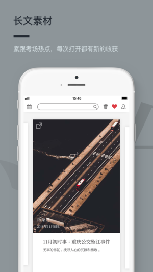 头都快秃了,作文还是想着怎么凑字数? 8102年都快结束了,还在用那10年前的作文素材? 我猜你还不知道——作文纸条,一款你身边的学霸都在偷偷用的作文App。 【评价】好到词穷是一种什么体验?用了就不再词穷。 -实时更新的作文素材库 动漫/古诗/文言文/文学摘抄/名人名言/影视台词/时政热点/历史故事/人物素材/书评影评/写作技法,全是你一直苦苦寻觅的高逼格作文素材。 -简洁高效 极简主义画风,每天仅需10分钟,充分利用碎片化时间,跟纸条君一起以一种简单美丽的方式,更高效地提高作文成绩。 -素材剖析 每个素材都给出了恰当的运用语境和范例,让你看了之后下一次考试就能立刻用上。 -长文素材…