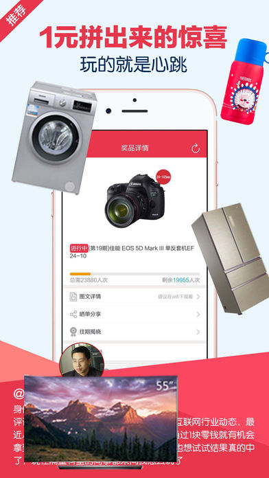 【内容提要】 梦想只要1元,你敢来挑战么! 一元购夺宝,一种全新的零钱夺宝模式! 一元购夺宝,一款全民一元购物神器! 一元购夺宝,上千种潮流商品,等你来夺! 不用再羡慕高富帅白富美,来这里,你也是! 【玩转一元购夺宝】 知道一元购夺宝怎么玩吗?小编打个比方 把iPhone6S的参考市场价分成M份,每份1元 当所有的份数售完后,立即揭晓这个iPhone6S的获奖者 当然,同期买的份数越多,中奖概率越大哦 【心跳等待】 参与一元购夺宝,比过山车更能体会到紧张刺激 屏息等待,开奖一刹那的惊喜,绝对让你心动 【晒单分享喜悦】 运气腻好!最喜欢的水晶项链都到了,一元购夺宝给力—大奖皇后 小米平衡车,走在路上撩妹特酷,我却只用了10块钱--我行我素 本来不信,中了金元宝之后,每天都在玩--中个大奖娶媳妇 【活动多多】 新用户首充50得128、1元秒变30、一键购不中包赔~ 心动到跳脚,等都等不及了 咨询时间:周一至周五 9:30—18:00