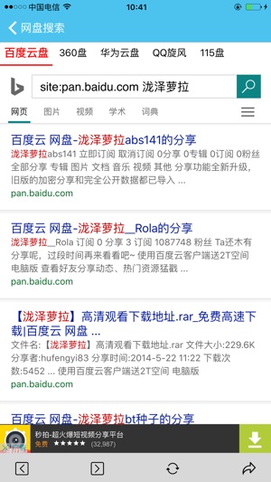 让互联网时代下的个体不再孤立,让孤立的资源重新发挥其共享的价值。 取消搜索次数限制 添加多个搜索源 还在为找网络资源而烦恼吗? 还在为各大网盘没有全盘搜索功能而抱怨吗? 网盘搜索神器!解放你的左右手! 能搜索国内多个网盘的分享资源! 功能强大,界面简洁,还在等什么,快快来下载吧