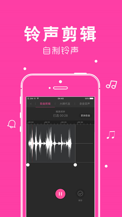 ●AppStore资源最全的铃声APP,800万首海量铃声,24小时实时更新热门铃声 ●一键同步设铃声,iPhone铃声设置竟如此轻松 ●支持移动、联通、电信三网设置彩铃 ●【安全】【绿色】【无广告】用起来贴心舒适的铃声助手! 【优质资源】800万首铃声资源,高清试听、免费下载,我们只提供高音质铃声! 【精彩分类】每日更新10000+,精细铃声分类,影视、DJ、动漫、搞笑、流行……给你想要的! 【设置便捷】来电、短信、闹铃一键设置,操作简单,提供个性化铃声创作功能,让你一秒变萌的铃声软件,不服来战! 【铃声制作】一秒创作个性铃声,歌曲剪辑,淡入淡出各种姿势帮你美化自制铃声! 铃声大全,专注提供高音质好铃声,完美适配ios10