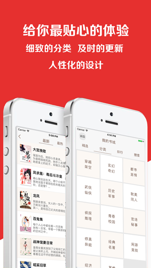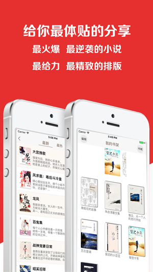 最专业的小说阅读器,最丰富的小说资源,最优质的小说内容,最全面的小说类型,最舒适的阅读体验,让您从此爱上阅读。 【功能特色】 1、专业编辑精挑细选百万本图书资源,最新最热最全网路小说一网打尽; 2、流畅舒适的阅读体验:采用最新的排版引擎,3D仿真翻页特效。 3、TXT长篇小说高效率智能辨识生成章节目录; 4、像操作桌面图示那样快速完成书籍分组,书籍管理轻松简单; 5、触屏滑动顺畅、展开书籍快速、阅读翻页无缝,性能稳定速度超群; 6、自动记录最后阅读的位置,另设书籍更新实时温馨提示,服务贴心; 7、无网路多格式文本离线阅读。