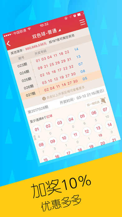 ------「会员专享福利」------ 【新人礼包】注册即送88元,人人有份! 【每日签到】彩票、红包、优惠券免费领,更有壕礼等你来抽取! 【加奖活动】高频彩加奖高达10%,中得越多奖的越多! 【呼朋唤友】亿元红包来就送,邀请好友奖不停! ------「双色球彩票特色」------ 【鸿运当投】涵盖热门彩种,摇一摇走上人生巅峰! 【开奖最快】中奖信息光速传递,幸福生活不能等! 【截止最晚】时间更充裕,大奖不怕迟! 【安全有效】真实出票,线上下单,线下出票,兑奖保证! 【功能齐全】智能追号、奖金优化、走势遗漏、比赛数据,助你精准投注! 【活动丰富】注册送、充值送、加奖、不中送,超多特惠等你来体验! (注:以上活动奖品与苹果公司无关)