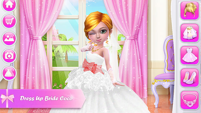 苹果商店美国区和中国区官方推荐的教育类新游戏! Cocoplay的最新3D力作! 在可可婚礼里,我们为小朋友们准备200+件婚纱礼服和其他婚礼配饰,将可可打扮成最动人的新娘吧!两大3D婚礼主题场景:庄严神圣的教堂,阳光浪漫的海边草坪,全景缩放旋转,真正的3D体验! 各式主题婚纱,新娘发髻,头纱,腕花,首饰,鞋子等,此外还有简约精致的新娘妆。自由搭配出你心中最完美的新娘吧!点随机搭配按钮说不定还有特别的惊喜哦!哪里才是举行婚礼的最佳场地呢?是在庄严神圣的大教堂,还是阳光浪漫的海滨草坪?两大3D场景可以体验哦,还能在里面自由行走,欣赏美景呢。 在这个特殊的日子里,不要忘记与可可拍下精彩瞬间哦…