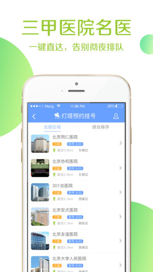 灯塔预约挂号APP是北京市首个免费预约挂号平台,汇聚了北京市160家医院号源,1000余位三甲医院特需专家,免去医院彻夜排队,避开号贩子加价,手机轻松实现预约挂号,方便快捷就医。 《 免费挂号平台,提供北京160家医院号源 》 《 三甲医院名医,一键直达,告别彻夜排队 》 《 轻松挂稀缺号,多科室1000余位医生任意选 》 《 推荐权威医生,只推荐副主任以上级别医生 》 《 看病拒绝黄牛,免费挂号,避免黄牛加价 》 【可提供挂号医院】: 北京协和医院,北京同仁医院,301医院,北京天坛医院,北京友谊医院,北京安贞医院,北京大学第一医院(北大医院),北京大学人民医院(北大人民医院),北京大学第…