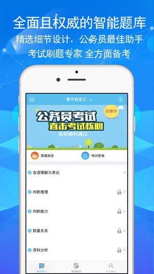 行测题库最新版-公务员考试行政职业能力测验 公务员考试对手多?赶快公考题库,轻松拿下公考。 2018年最火爆的公务员考试题库APP正在向你袭而来,公务员考生的提分利器! 公考APP眼花缭乱、公考对题库如何在茫茫题库中能够脱颖而出,亮瞎你的双眼呢 公务员考试常识70000题,阅读理解,图形推理,随身练。 【公务员行测、申论最新大纲、考点练习】 精心整理考试中的每个考点并和题目进行关联,结合后台智能算法,最精准的为考生提供练习题目从而大幅度节省考生的做题时间,使考生做题不再迷茫。 【公务员行测、申论最新大纲、章节测试】 翻书翻得眼花缭乱,无法快速而准确的获取想要的题目?不用急,辛勤的老师早已…