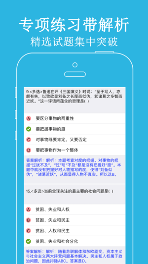 事业单位考试通关神器! 一款五星级评价的事业单位APP,好评如潮!64000道真题(价值1288元)含解析,通关无忧!精心准备了2017年试题,适合于2017年(省、市、州、县、乡)事业单位公开招聘工作人员考试,量身为事业单位招聘考试量身打造。 【专项试题内容】 公共基础专项训练包括:时事政治(包括2015年1月~2017年4月及答案含解析)、、2017年政府工作报告、十八届六中全会、2017年中央一号文件、2017年中央经济工作会议、2017年中央农村工作会议、G20峰会、供给侧结构性改革、2016年政府工作报告、2016年中央一号文件、十八大专题、十八届五中全会、十八界四中全会、四个全面…