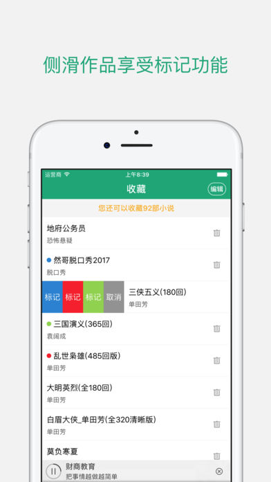 我听评书汇集各类有声资源,提供单田芳、袁阔成、刘兰芳、田连元,连丽如等众多评书表演艺术家的经典评书,还有海量有声小说,每日更新。 界面简洁大方,使用流畅,快来下载体验吧!