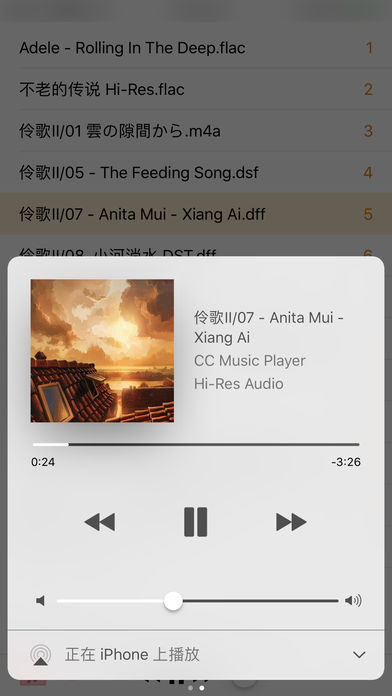 Car Cat Player 是一个全格式音频音乐文件解码器和音乐播放器,支持市面所有的音频格式的解码播放和数字PCM输出。 支持线控,耳机和EarPods / AirPods控制 支持控制台音乐播放控制 支持锁屏音乐播放控制 支持远程音乐播放控制 支持AirDrop导入文件 支持 CarPlay,CUE(如果乱码,CUE另存为UTF-8) 支持数字PCM输出 支持蓝牙播放和车载播放 支持从其他 App 导入音乐文件 支持 CD 无损音乐播放 支持无损音乐播放和SACD DSD(dsf/dff),DXD音乐播放 支持 Hi-Res 无损音乐播放 在列表向左滑动删除歌曲文件并释放存储空间。 支持的位深:1bit/8bit/16bit/24bit/32bit/64bit 支持的采样率:22kHz/44.1kHz/48kHz/88.2kHz/96kHz/176.4kHz/192kHz/352.8kHz/384kHz/705.6kHz/768kHz/2.8224MHz 支持的音乐格式: APE ,FLAC ,DSF ,DFF ,DTS ,WAV ,ALAC ,AAC ,AAC+ ,MP3 ,WMA ,DST ,WavPack ,Ogg ,Speex ,AIFF ,AVI ,MSF ,DTS-HD ,ATRAC1 ,ATRAC3 ,AIFC ,DTS WAV 8SVX exponential ,8SVX fibonacci ,AC-3 ,ADPCM 4X Movie ,APDCM Yamaha AICA ,ADPCM CDROM XA ,ADPCM Creative Technology ,ADPCM Electronic Arts ,ADPCM Electronic Arts Maxis CDROM XS ,ADPCM Electronic Arts R1 ,ADPCM Electronic Arts R2 ,ADPCM Electronic Arts R3 ,ADPCM Electronic Arts XAS ,ADPCM G.722 ,ADPCM G.726 ,ADPCM IMA AMV ,ADPCM IMA Electronic Arts EACS ,ADPCM IMA Electronic Arts SEAD ,ADPCM IMA Funcom ,ADPCM IMA QuickTime ,ADPCM IMA Loki SDL MJPEG ,ADPCM IMA WAV ,ADPCM IMA Westwood ,ADPCM ISS IMA ,ADPCM IMA Dialogic ,ADPCM IMA Duck DK3 ,ADPCM IMA Duck DK4 ,ADPCM IMA Radical ,ADPCM Microsoft ,ADPCM MS IMA ,ADPCM Nintendo Gamecube AFC ,ADPCM Nintendo Gamecube DTK ,ADPCM Nintendo THP ,APDCM Playstation ,ADPCM QT IMA ,ADPCM SEGA CRI ADX ,DV audio ,Enhanced AC-3 ,MP1 ,MP2 ,MPEG-4 Audio Lossless Coding ,RealAudio 3.0 ,RealAudio Lossless ,RealAudio SIPR , ACELP.NET ,Sierra VMD audio ,Smacker audio ,Sonic lossless ,True Audio ,TrueHD ,VIMA ,Vorbis ,Xbox Media Audio 1 ,Xbox Media Audio 2 ,Windows Media Audio Lossless ,Windows Media Audio Pro ,Westwood Audio (SND1) ,PCM Zork ,PCM signed 16-bit ,PCM signed 24-bit ,PCM signed 32-bit ,PCM 64-bit floating ,PCM mu-law ,Nellymoser Asao ,Musepack SV7 ,Musepack SV8 ,Matroska audio 和更多其它100多种格式...... 如何使用和拷贝歌曲:使用iTunes/文档同步工具拷贝至APP共享目录. DSP处理精度: 64bit 最大数字输出规格:24bit/32bit 384khz/768khz PCM信号 信噪比: 384 dB 支持邮箱:1413287676@qq.com 支持简体中文,繁体中文,UTF-8文件名