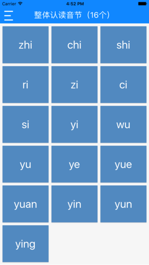 原汁原味有声挂图,把墙上的有声挂图搬到手机上来 生活中的有声挂图,一张都需要12元,值不值?值!因为宝宝学习是无价的,那么手机版的有声挂图来了,而且只需要1元(限时打折中),更加优惠,心动不如行动。 里面包含多种挂图 1 韵母表 3 声母表 3 整体认读音节表 全部是真人发音,声音洪亮,发音标准,难得的好应用。1元只是一支棒棒糖的价钱,在亲子游戏中却能收货知识和家庭的爱,你还没心动吗?