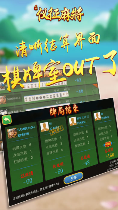 仪征黄庄麻将是一款有着地道仪征地区麻将玩法趣味的棋牌类游戏,玩家可以在游戏中体验到独具仪征地方特色的玩法。游戏操作简便明了,集娱乐、社交、休闲于一体。黄庄加倍、起手报听加倍、杠开、对对胡、七小对、全大元、天胡、清一色等各种牌型满天飞!快来下载仪征黄庄麻将体验一下吧!