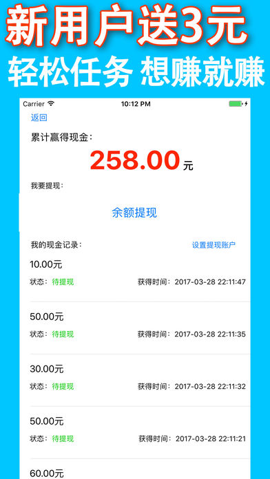 做任务,得现金!精选性价比高的简单任务,轻松赚钱! 支持支付宝、微信、银行卡提现。 随时随地,想赚就赚!内置休闲小游戏,做任务累了,还可以畅玩小游戏休息放松。 赶快来试试吧!