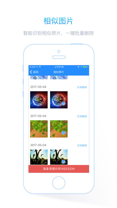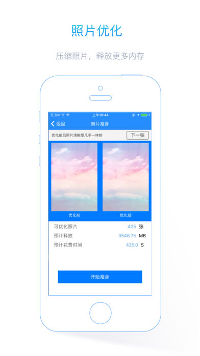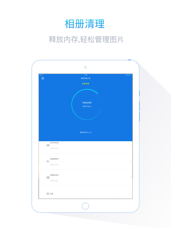 ==最后一天半价!赶快下载吧!== 支持iOS 10! 相册管理助手,帮您轻松管理您的相册,释放出更多的存储空间,时刻保持相册的干净! 照片优化 – 不改图片的清晰度优化照片,释放更多内存 截屏清理 – 急速找出手机相册中的截屏图片,一键清理 相似图片 – 智能识别出相似照片,一键批量删除