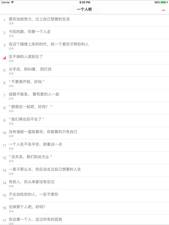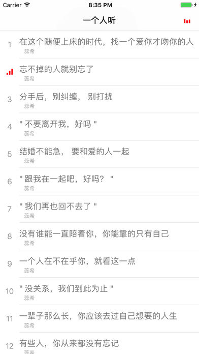 我是蕊希,素未谋面,谢谢你,愿意听我。 你知道么?在我们生活的这个星球上,有几十亿个人,此刻,像我们这样的两个人,相识的机会只有千万分之五。 所以,如果我在节目里说过的任何一句话,我在这里分享的任何一段字句,让你内心某个最柔软的地方被触动过。 那我想,至少说明,在已经过去了的日子里,我们经历过相似的事情,有过相同的感悟。 最后,谢谢你愿意陪着我,谢谢你,喜欢听我说话。如果有一天,你取消关注了,请记得我们曾经爱过。