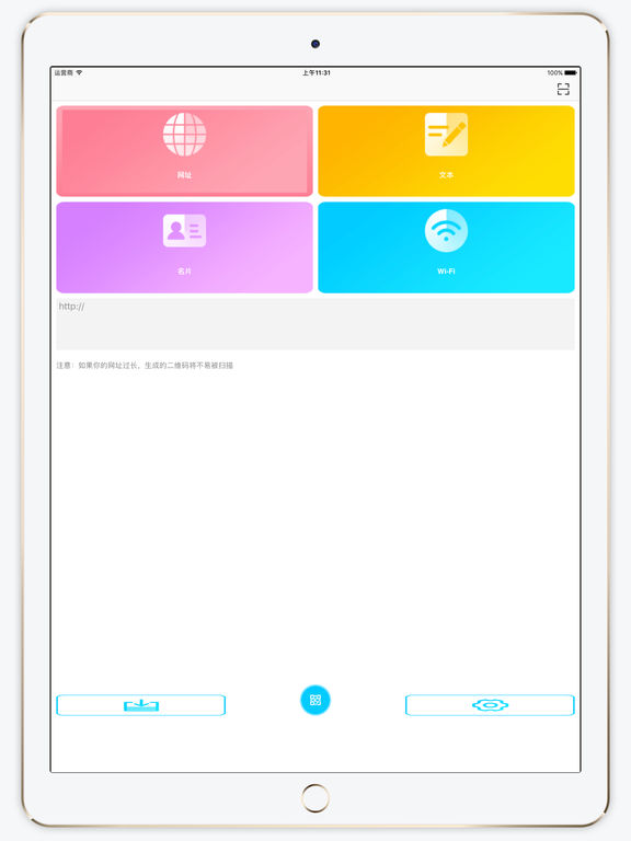 最后一天半价!赶快下载吧! 不论是文本,网址,名片还是Wifi,有了它,全部都可以生成二维码 专业,简洁、方便、快捷,只为更好的服务您。 Email: mengyateam@gmail.com