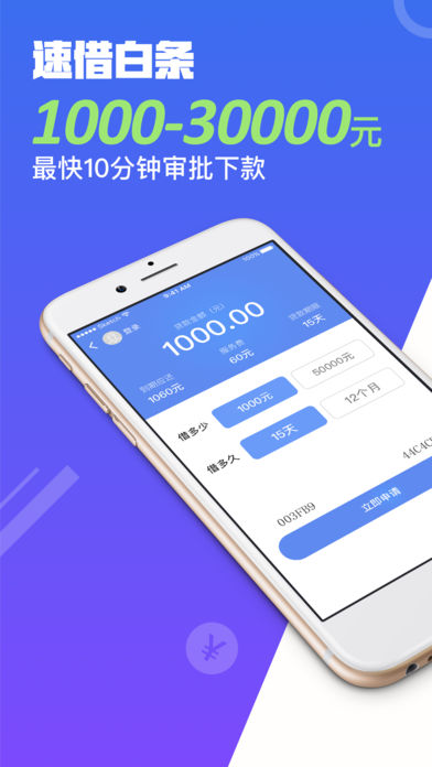 速借白条—当下最火的小额现金贷,15分钟快速审核,2小时极速放款。让你借钱方便无忧!凭芝麻信用贷款50000元 【特色优点】 1、 速度快:15分钟快速审核,2小时极速放款。 2、 申请简单:在线填写资料直接提交申请 3、 资料安全:保护客户资料不外泄 4、 低费率:超低手续费秒杀信用卡 5、 多人群:不管你是白领还是大学生、或是工薪族和个体工商户等,通通都用贷上钱。