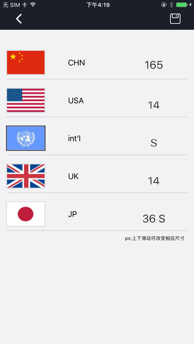 尺码助手,是一个用于购物的不可或缺的应用程序,一款国际尺码换算的实用工具。它允许你把你的衣服尺寸的信息存储,转换成其他国家的服装尺寸。 有了它,再也不用担心查不到国内外尺码的不同了,买国外衣服鞋子更放心,更合身! 特点: 1, 建立个人的资料库 2, 保存个人的服装尺寸和鞋码大小 3, 自动换算多种尺码 4, 支持中国,英国,日本,美国,欧洲和国际尺寸 5,方便的购物,轻松地找到合适的衣服。 赶紧查找合身的尺寸吧,买更合身的国内外衣物!