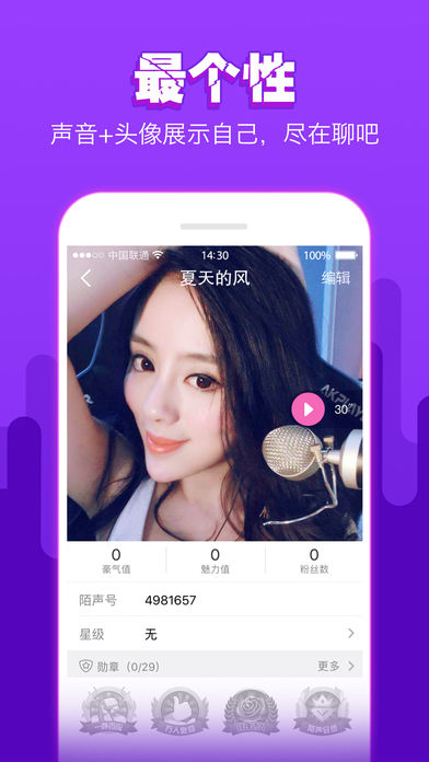 陌声温情版,从心出发,寻找真情。 陌生人同城交友,我们将尽量为您寻找同城的陌生人进行聊天,达到交友的目的。 你想结束单身,想认识异性朋友,及时的消息提醒,掌握TA的最新动态,这时代交友要的是就是速度; 陌声温情版支持文字,语音,图片消息,聊天充满乐趣,快来体验吧 【金币】 可在应用内购买金币,金币可用来赠送虚拟礼物。 金币共有6种礼包 1、30元购买315金币 2、98元购买1120金币 3、298元购买3500金币 4、588元购买7000金币 5、1198元购买14000金币 6、2998元购买35000金币 【会员订阅服务说明】 服务名称:连续订阅会员 价格: 黄金VIP:18元/月;148元/12个月 钻石VIP:78元/月;258元/12个月 超级VIP:128元/月;388元/12个月 【特权订阅服务说明】 服务名称:连续订阅特权 价格: 紫钻:18元/月;108元/12个月 金钻:18元/月;108元/12个月 红钻:18元/月;108元/12个月 【座驾订阅服务说明】 服务名称:连续订阅座驾 价格: 布加迪威龙:568元/1个月;1198元/3个月;2098元/6个月;3298元/12个月; 法拉第F12: 258元/1个月;538元/3个月;918元/6个月;1548元/12个月; 大众帕萨特:48元/1个月;100元/3个月;173元/6个月;288元/12个月; 奥迪A4L:128元/1个月;268元/3个月;458元/6个月;768元/12个月; 购买连续订阅会员,连续订阅特权,连续订阅座驾的账号,会在服务到期前24小时,自动在 Ttunes 账户扣费并延长对应的订阅有效期。 如需取消订阅,请手动打开苹果手机“设置”—>进入“iTunes Store 与 App Store”—>点击“App ID”,选择“查看App ID”,进入“账户设置”页面,点击“订阅”选择会员,特权,座驾,取消订阅即可。 会员服务协议:http://m.mosheng.mobi/live/vipterms.html 座驾服务协议:http://m.mosheng.mobi/live/carterms.html 特权服务协议:http://m.mosheng.mobi/live/priterms.html 连续订阅服务协议:http://m.mosheng.mobi/live/car_buy_protocol.php 隐私协议:http://m.mosheng.mobi/live/policy.html
