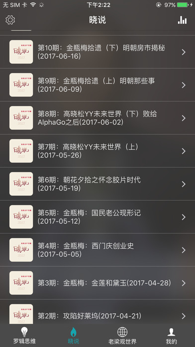 有种、有趣、有料,这就是他的罗辑思维! 罗辑思维有声全集,每周五及时更新,罗胖高端脱口秀,让你在知识中寻找见识! 没有内置广告,绝不强制评论,界面更优雅,欢迎您的收听