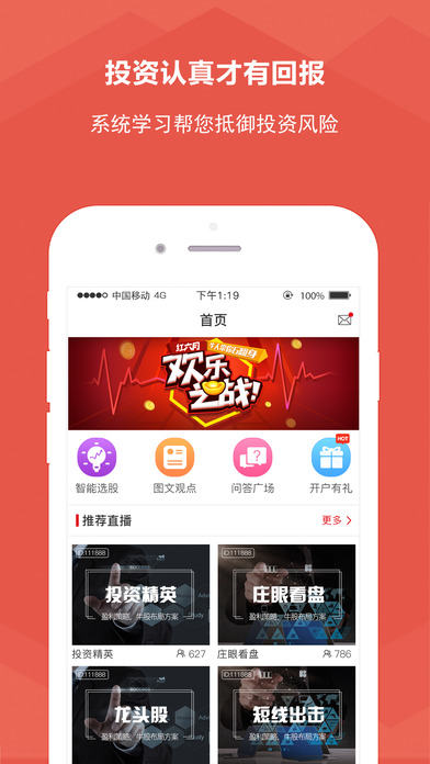 呱呱股票—免费的财经股票直播平台 平台入驻全国知名的财经牛人、大V、股票高手,累计服务数百万用户,7X24小时,不间断在线视频直播,每日解读股市大盘走势,与用户保持全面深入的交流。看视频直播,抓涨停牛股-就上呱呱股票! 在呱呱股票,你可以 【看视频、学炒股】 高清视频流,极致的视频体验。视频教学,一学就会。跟着牛人,学习股票、理财、投资、财经的基础知识,逐步掌握炒股技巧。 【围观牛人炒股】 3000+视频直播间牛人实时在线视频直播;1000+牛人图文直播,7X24小时不间断生产海量干货课程。技术分析、基本面分析、价值投资,助您找准适合自己的投资方式。 【牛人在线 有问必答】 全平台讲师在线答疑,个股、行业、盘面,随时问,随时答。 【随时接收牛人观点】 关注牛人后,牛人发布的每条观点都能实时收到,不错过每一个重要的投资时刻! 对于产品有任何疑问或建议,请联系我们: 客服QQ:158777852或158777856 客服电话:010-57835800-6878 客服邮箱:shufeng@17guagua.com Guagua stock - free financial stock live platform Platform settled in the national well-known financial genius, big V, stock master, the cumulative service of millions of users, 7X24 hours, uninterrupted online video broadcast, daily interpretation of the stock market trend, and keeping a comprehensive and in-depth exchanges with uses. Watching live video, grab the daily limit of Niugu - on the Guagua stock! In the Guagua stocks, you can [See video, learn investing in stocks] High-definition video streaming, the ultimate video experience, Video teaching in which users can learn as fast as they can. You also can follow the stock masters to learn stocks, financial management, investment, financial basic knowledge, and gradually grasp the stock tips. [ watch how stocks master invest in stocks] 3000 + masters show how to invest in stocks.1000 + masters give text lives, 7X24 hours of continuous production of massive serious good courses. Using Technical analysis, fundamentals analysis, value investment help you identify their own investment. [answer all the questions immediately] Full platform lecturer online Q & A, stocks, industry, disk, at any time. [accept masters’ view at any time] When you concerned about the master, the master will release every view and you can receive those views in real time so that you will not miss every important investment moment! If you have any questions or suggestions on the product, please contact us: Customer Service QQ: 158777852 or 158777856 Customer Service Tel: 010-57835800-6878 Customer Service E-mail: shufeng@17guagua.com