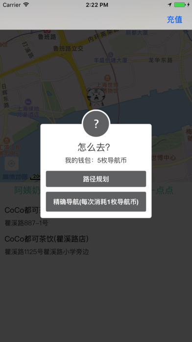 王大虎找奶茶是一个导航内的APP,类似于早期在苹果商店上架的'查找附近星巴克' 打开APP后,首先选择自己喜爱的奶茶店,然后点击确定,就会进入搜索结果页。搜索结果页会显示附近三千米内你所喜好的奶茶店,你可点击任意一条结果,地图则会自动规划出当前位置到所点击奶茶店的步行路线。你同样也可以点击列表页顶部的选择栏来选择自己喜好的奶茶品牌。 王大虎找奶茶这个APP专门为中国用户量身定做。现在各种奶茶店风靡全中国,用百度地图或高德地图APP去搜索这些奶茶店显得相对低效,为此,王大虎找奶茶APP应运而生,专心于如何更高效便捷的让出行在外的人找到喜爱的奶茶店。