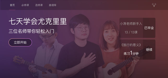 AI音乐学院是基于乐音识别技术的一个全新的音乐教学应用,采用全球首创的AIMusic 2.0 智能互动音乐教学方式,已帮助超过200000+零基础用户,七天即可学会吉/他尤克里里弹唱! 如果用这个APP你都学不会,那你基本上就告别乐器了,当然,你还可以吹口哨!