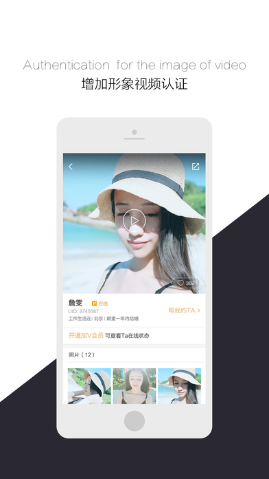 我们只做和你一样认真的专业婚恋平台。 在MarryU,没有人会笑你太认真。 所有会员都必须真实身份认证,让每一个缘分都真实无虚。 [问答] MaryyU(官方版)是什么? MarryU是为有明确结婚计划的优质单身人士提供一个高品质征婚相亲的婚恋平台,全新的实名制认证交友模式,让会员的交友环境有一个真实安全的保障。平台采用身份认证、学历认证、资产认证的模式杜绝酒托,婚托等诈骗行为,保证平台内的会员都是以结婚为目的。 MaryyU认证会员如何? 1、本科及以上学历。 2、以海归、华侨、金融、外企,文化等群体为主,多数有房有车,具备结婚硬件条件。 3、U嫁认证会员有相似的优质生活方式。会员通过U嫁可以寻找到与自己合适的优质单身人士,建立美好的沟通,直到走向婚姻的殿堂。 [功能] 1、寻TA:最美丽的认识从寻TA开始,直接查看会员的真实头像及信息,根据个人要求进行筛选在第一时间找到合适的人,喜欢的人可以直接收藏让对方知道你的心意。 2、消息:希望认识的会员可以直接给对方发送消息进行聊天沟通。 3、我的:个人详细信息的真实,会员信息都是经过严格的审核,可以在第一时间最真实的了解会员的个人情况。 [网友评价精选] “好评!非常给力。U嫁是一个真实的交友征婚婚恋平台,用户都是白领精英,想找对象的不要错过。”by 世纪佳缘红娘网 “非常给力。赞一个!还不错!一款特别好的征婚交友婚恋软件。平时工作没时间,现在在网上就可以解决男票的事,真是太赞了。支持不错赞”by 爱上红娘来了 “通过豆瓣小组介绍来注册的,虽然认证比较繁琐一点,但是这样反而使用起来会很放心,用户也都是很真实,质量都很不错,比有缘网,花田,世纪佳缘的好多了,很多都是名校毕业,也有和我一样是海归国外回来的朋友”by-征婚相亲yy珍爱 “无意间搜索到这个软件,就下载来看看,不巧就看见了有喜欢的女生,试着去认证了,真的是不得不相信会员都是高品质的真实用户,审核也蛮快的,之后我就直接给我喜欢的女生发信息了,还蛮方便的”by--网易cc百合网 “哇塞美女高素质超级多,为我们这种单身人士提供了很多更多的机会百合网”by 花田相亲红娘珍爱 “里面有我心仪的帅哥,条件也不错,征婚相亲还是不错,准备找机会见个面看看感觉礼物说”by--JOY百合网恋爱记 会员来源:奢圈,海归网,圈层,百合,企业家圈,FaceBook,美盟,花田,YHOUSE悦会,世纪佳缘,心心缘征婚相亲网,百合网,世纪佳缘婚恋交友,珍爱网,探探,比邻,yy,脉脉,派派,网易cc,赤兔,友加,礼物说,恋爱记,红娘来了,红娘网等 [联系方式] 网站:http://www.51marryyou.com/ 官方微博:@ MarryYou高端婚恋 官方微信:@MarryYou高端婚恋(marryyouclub) QQ咨询:3228908556 客服电话:0571-81600096