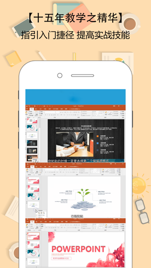 PPT教程-Microsoft office Powerpoint是微软公司设计的演示文稿软件。可以在投影仪或者计算机上进行演示,PPT制作已经成为办公室必备技能之一。 PPT不是简单的文字、图片的堆砌。而要上升到艺术的高度,您想让自己的PPT做得更好吗?来吧,跟着教程的节奏,让你成为PPT高手。从基础开始,细致入微向您讲关于PPT制作的每一个细节。 每天学习一点ppt,让幻灯片/演示文稿变简单。