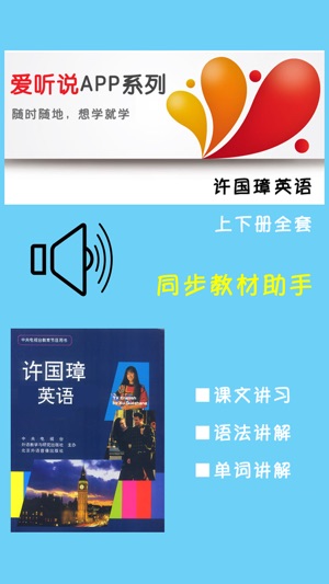 【爱听说】APP系列,是辅助学习神器,让语言学习变简单! 因为懂你,所以有效,不只是学英语,更是说英语! *** 爱听说,您的专属私人外教! *** 爱听说,像学母语一样学英语! *** 爱听说,让世界听你说,立即说! ■■■ 本软件配套《许国璋英语上下册全套》最新教材。 课本全覆盖,让您全面掌握字母、发音、单词、短语、句子、语法及课文内容。 量身定制教材,课程设置出发点明确,从易到难逐步巩固,个性化互动体验,学习事半功倍,听说读写综合素质全面提升! 打造移动学习新体验,用科技放飞梦想,让学习者轻松拥有浸入式学习环境! 课文讲习,语法讲解,单词讲解。 更具有系统性:课文、对话、练习自…