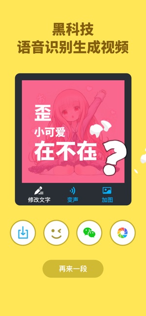 报告!我是【动话机】。 对着我说话,我可以识别你话里的文字,连同语音一起生成一段动感小视频! ※ 最精准的语音识别技术:混合苹果语音识别和科大讯飞语音识别,方言,唱歌,英文随便说 ※ 最智能的音色匹配系统:大叔音、娃娃音、帝王音匹配合适的特效 ※ 多平台分享,微信,QQ,微博都能一键分享 =====浪翻朋友圈&微博倒计时中===== @帝都学生党 随口发句牢骚就能发条别出心裁的票圈,好特别,好喜欢,超酷超有范! @最右声控 我好喜欢我的声音能用动话视频的方式展示:大河之剑天上来。 @倒鸭子作者 之前剪辑倒鸭子的视频花了一整天,现在竟然能一键生成,简直666!