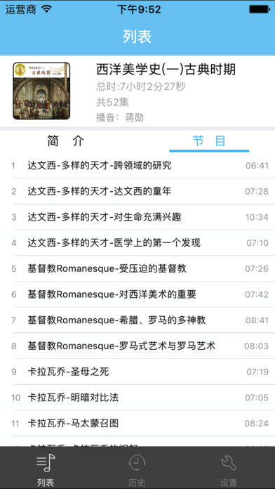 蒋勋先生的《西洋美学史(一)古典时期》有声书。 这本书分古代美术、近代美术、现代美术三个部分,以时间的顺序阐述了西方美术在人类文明的历史长河中的发展与演绎,其中包罗了建筑、雕塑、绘画等艺术的各个领域,而以国家、以地域、以流派一一加以介绍、分析、评述。对于学习美术的学生,或其他艺术爱好者,或者说那些“在第一层住得有点不耐烦的人”,都是一本不可多得的入门好书。而且,以丰子恺先生那散文家的文笔,艺术家的眼光,即使使用的是上个世纪三十年代的语言文字,即使阐述的是美术史这样的理论,仍然显得通俗流畅,浅显易懂。