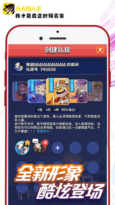 《天天狼人杀》是一款集发言、表演、盘逻辑于一身的视频交友AP P。天天和狼友们互飙演技,用推理的魅力征服对手,瞬间成就感爆棚。 【内容亮点】 -9人局,萌新入门,欢乐上路;12人局,高手过招,舌战群雄! -视频交友狼人杀,真实的还原面杀“紧张感”,无插麦,更专业! -快速匹配,不用担心找不到对手,四海八方皆狼友,随时开杀! 黑夜来袭,怎能不来局天天狼人杀? 更多玩法及角色正在不断更新中,敬请期待。