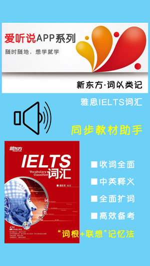 【爱听说】APP系列,是辅助学习神器,让语言学习变简单! 因为懂你,所以有效,不只是学英语,更是说英语! *** 爱听说,您的专属私人外教! *** 爱听说,像学母语一样学英语! *** 爱听说,让世界听你说,立即说! ■■■ 本软件配套新东方的《词以类记-雅思IELTS词汇》红宝书最新教材。 课本全覆盖,让您全面掌握字母、发音、单词、短语、句子、语法及课文内容。 量身定制教材,课程设置出发点明确,从易到难逐步巩固,个性化互动体验,学习事半功倍,听说读写综合素质全面提升! 打造移动学习新体验,用科技放飞梦想,让学习者轻松拥有浸入式学习环境! 雅思考生人手一个的经典词汇应用工具! 核心…