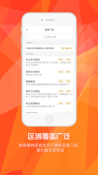 邻家便利店-邻家,生活+ 售卖的是商品,打造的是便利。 邻家便利店是一家以自营为主要经营方式、24小时营业全年无休的便利店。提供品质优良的商品,在满足顾客便利购物的同时,首推多种贴心服务省事省力又省心。我们希望成为每一位客户身边的“家”。 【优惠多多】新人福利、会员日、积分兑换,还有多种专享优惠券。 【品类齐全】便当、蛋糕、沙拉、水果、冷饮,酒水,日常百货品类齐全。 【放心极速送达】1个小时极速送达,给您新鲜的商品。 【品质保证】选择邻家,给您信任。邻家的每一款食品都经过精心挑选、严格把控,不负您的信任。 【区域覆盖广泛】邻家便利店在北京已拥有百家门店,我们就在您身边。 【便捷支付方式】微信支付/支付宝/钱包,多种支付方式供您选择。 【联系方式】微博@邻家连锁便利店、微信@邻家便利店
