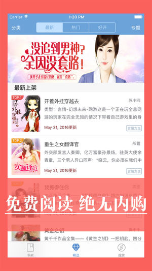 1,支持下载离线看,节省流量。 2,书源多,随时更新,看的爽。 3,功能齐全,多种字体,多种皮肤,总有一款你满意。 4,支持朗读功能,从此听书更轻松。