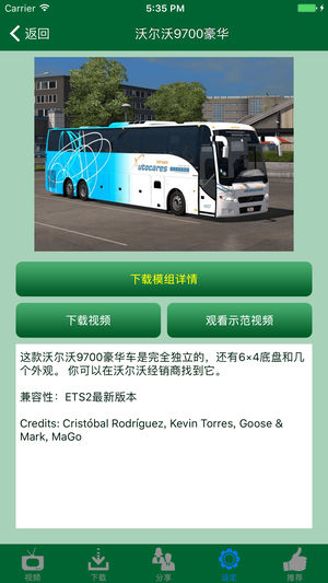 这是一个非官方的【欧洲卡车模拟2】模组App。 厌倦了四处寻找有趣的【欧洲卡车模拟2】的模组,但最终浪费时间和金钱,下载和设置一些枯燥无味的东西?不用再搜索了! 这App提供了【欧洲卡车模拟2】的模组,可以从我们的服务器下载,无须缴付额外费用或定期订阅。根据模组的截图,视频和说明,你就能决定所需的时间和金钱是否值得备份游戏,下载,安装和尝试使用这些模组。 这游戏可于网站 http://store.steampowered.com/app/227300/Euro_Truck_Simulator_2/ 上购买。 这模组App暂时收编了70多个设计模组,这些模组都相当有趣。当有更多有趣的模组…
