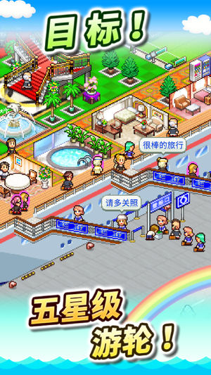 操舵豪华游轮吧。 建造客房、气泡按摩浴缸、俱乐部、餐厅等设施并举办人气环游旅行。努力成为国王认可的世界级五星游轮吧。 顾客的满意度会根据设施之间的契合度以及道具而不断上升!如果能令每半年来一次的审查人员满意的话就能获得五角星。说不定还可以邀请到名人前来做客…… 自由设计船上的布局,打造一艘奢华亮丽的客轮吧。 ---- 这是可以让人安心游玩的正版哦。 如果大家还是玩盗版的话,开罗君会哭的,说不定就没法继续做有趣的游戏了呢…… 其它游戏也请通过“Kairosoft”来进行搜索。http://kaipa.jp 还有支持移动设备/电脑的游戏发展国物语等免费游戏哦。